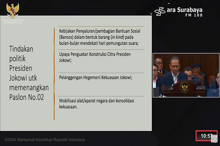 TIMES Sumsel/Ketua KPU RI Hasyim Asy'ari dalam sidang lanjutan PHPU di Mahkamah Konstitusi, Jakarta. (FOTO: Tangkapan Layar)