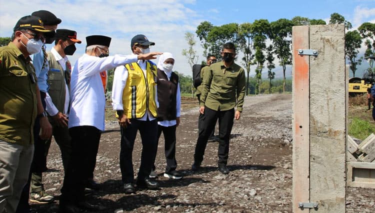 TIMES Sumsel/Sekjen PUPR RI Mohammad Zainal Fatah dampingi Wapres RI KH Ma'ruf Amin meninjau lokasi pembangunan Hunian Sementara (Huntara) bagi korban terdampak erupsi Gunung Semeru di Desa Sumbermujur, Kecamatan Candipuro, Kabupaten Lumajang.